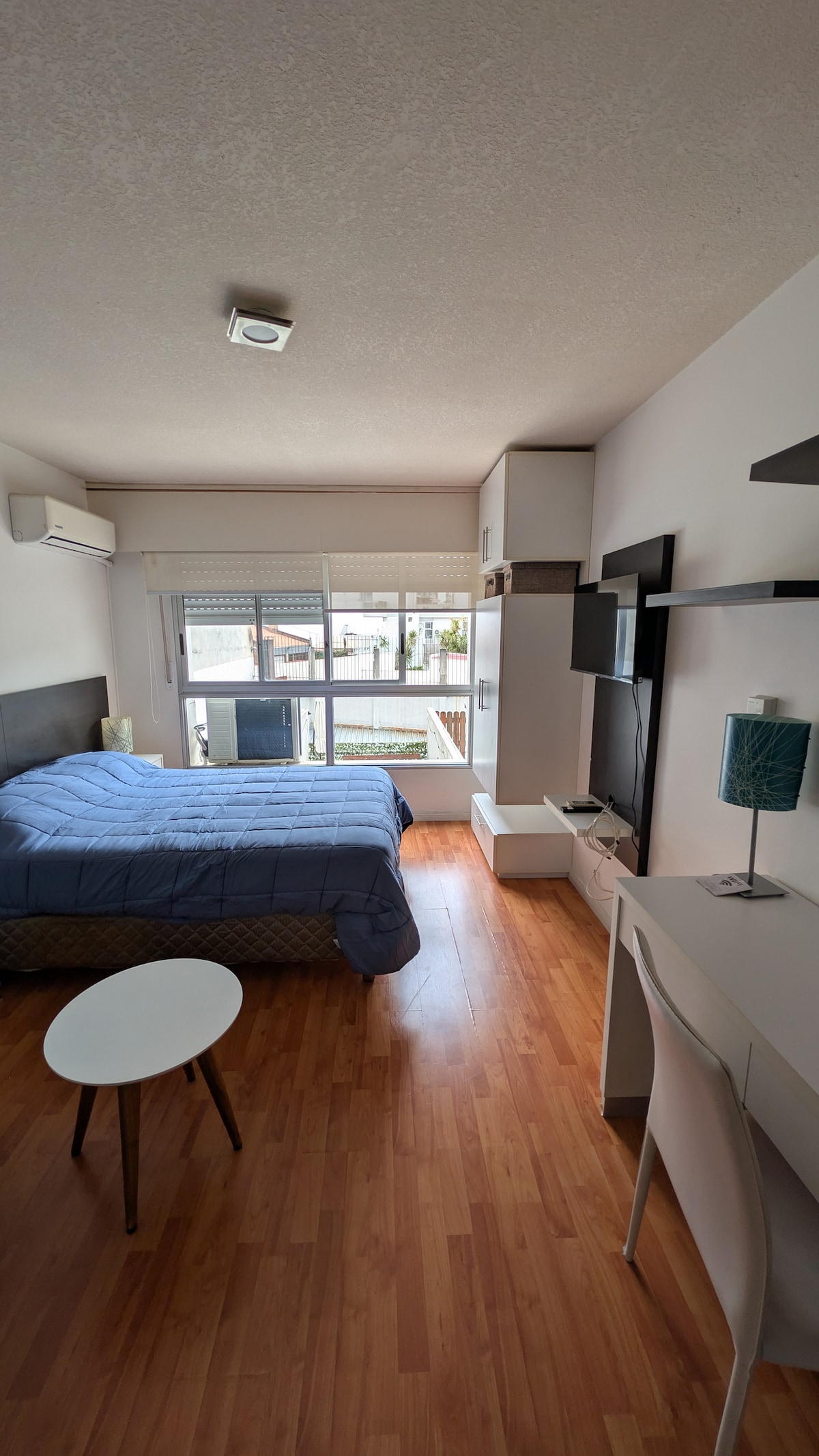 Spacious studio apartment in a new designer building, with parking, full-equiped kitchen, fast Wi-Fi, living room with 50´ Smart TV with DirecTV, balcony with a beautiful clear view of the city skyline, washing machine, double bed, spacious bathroom. The building is very nice and has a gym and free garage for your use. The location is the best in the city (Golf), green, peaceful, safe and close to everything (Punta Carretas Shopping, Parque Rodó, Ciudad Vieja, Rambla, beach).