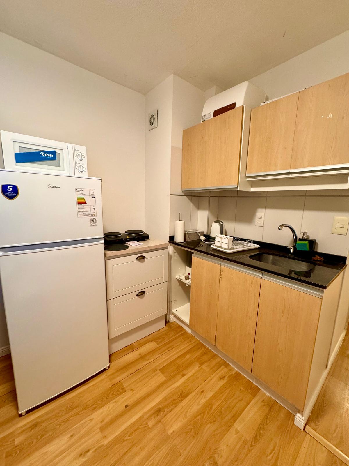 This wonderful studio is difficult to match in Montevideo! It´s in the top floor of a brand new building, located in the heart of Punta Carretas, walking distance from Punta Carretas mall, the riverside, supermarket, coffee shops and restaurants. It counts with a full fledge barbecue pit in the terrace, from where you can enjoy the sunset with spectacular views of the city. Come for an unforgettable stay!