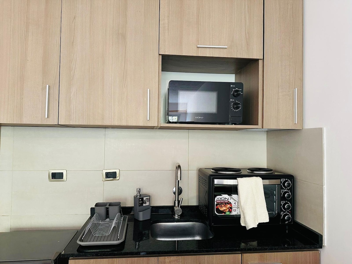Spacious Studio with balcony, kitchen, garaje, a/c
