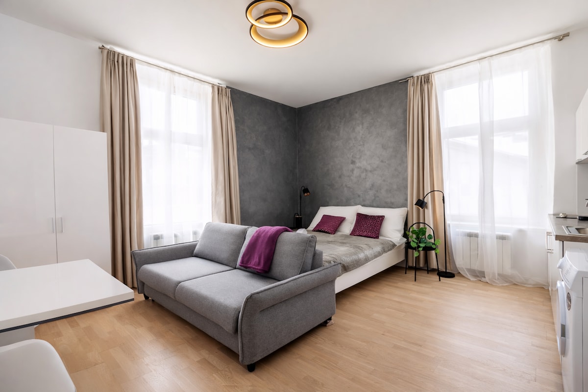 Enjoy the unlimited shopping, museums, clubs and bars just steps away from our centrally located modern Angelo Roma apartments. ➤ 3-min walk from tram stop ➤ 5-min walk from historic center Wenceslas Square ➤ Hyper-responsive support ➤ Fully-equipped kitchen ➤ Late check-out available until 1pm Your home is close to National Museum (Národní Muzeum), Wenceslas Square, Astronomical Clock, State Opera, Rigerovy gardens, Main Train Station, Mucha Museum, Jerusalem Synagogue