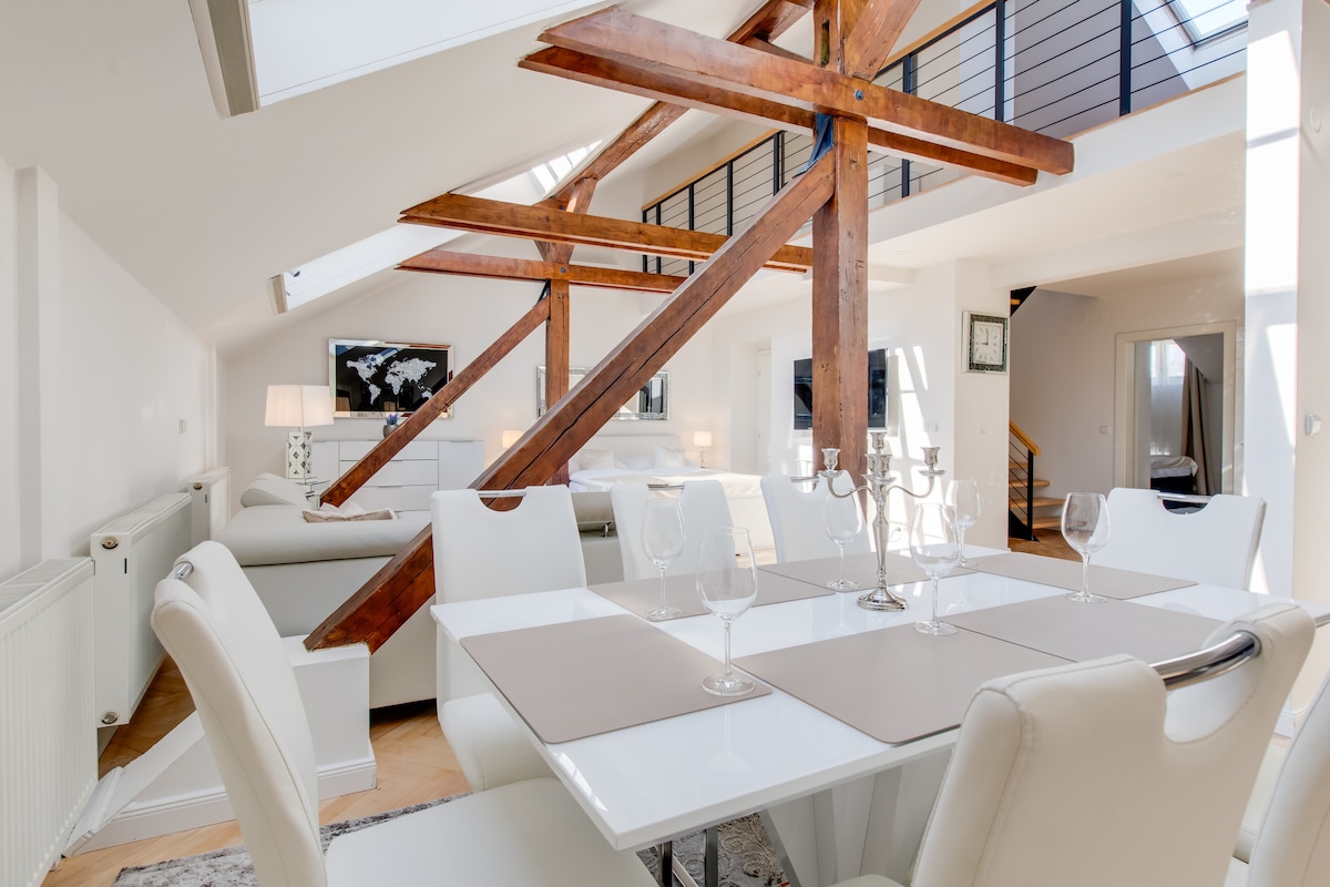This centrally located loft is very spacious (130sq meters) and the windows bath each room in light, however, blinds in the living room and black out blinds are on the windows in the bedroom to ensure a proper rest. Please note that the common premises are being renovated with the scheduled end of works by mid October 2024. There is no noise associated with the works.