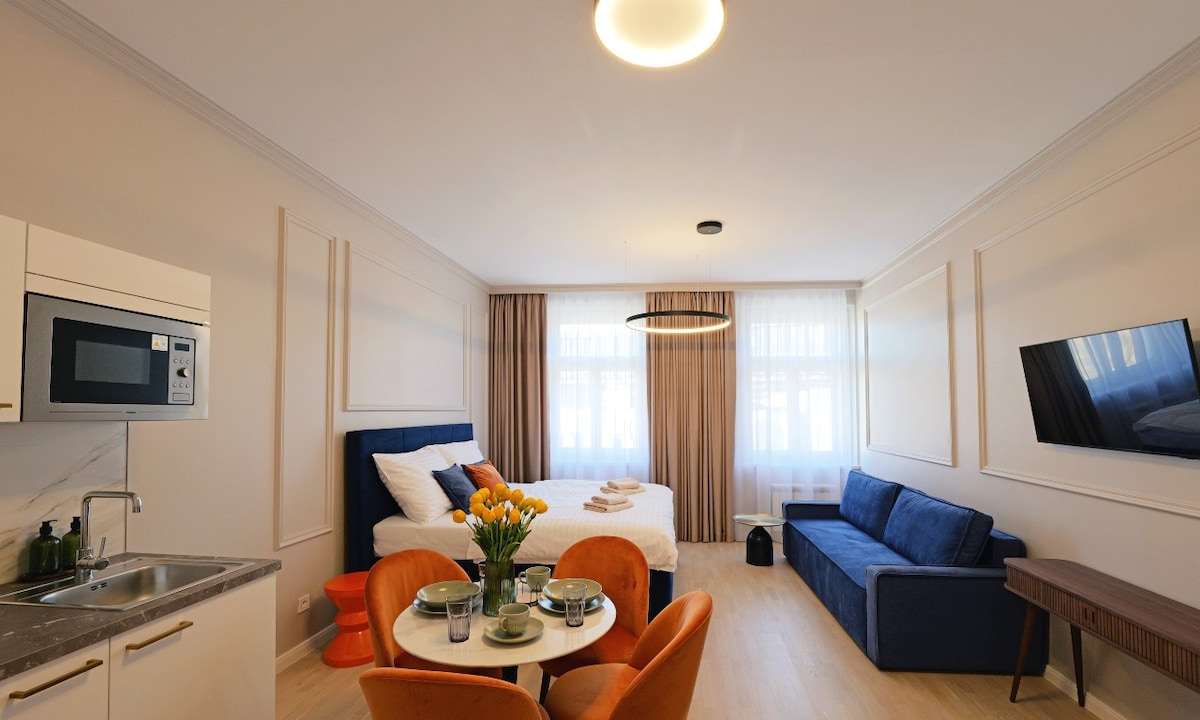 Welcome to our stunning apartment in the heart of Prague! Our spacious and bright home is housed in a historic building with preserved details, and boasts 2 large bedrooms, a balcony, a living room with a huge TV and sofa bed, and a huge dining area. Relax in the bathroom's large hot tub with a TV, and enjoy our lightning-fast WiFi connection. Dine at any of the outstanding restaurants in the area, and explore the city's many attractions. Book now for an unforgettable stay in out beautiful city!