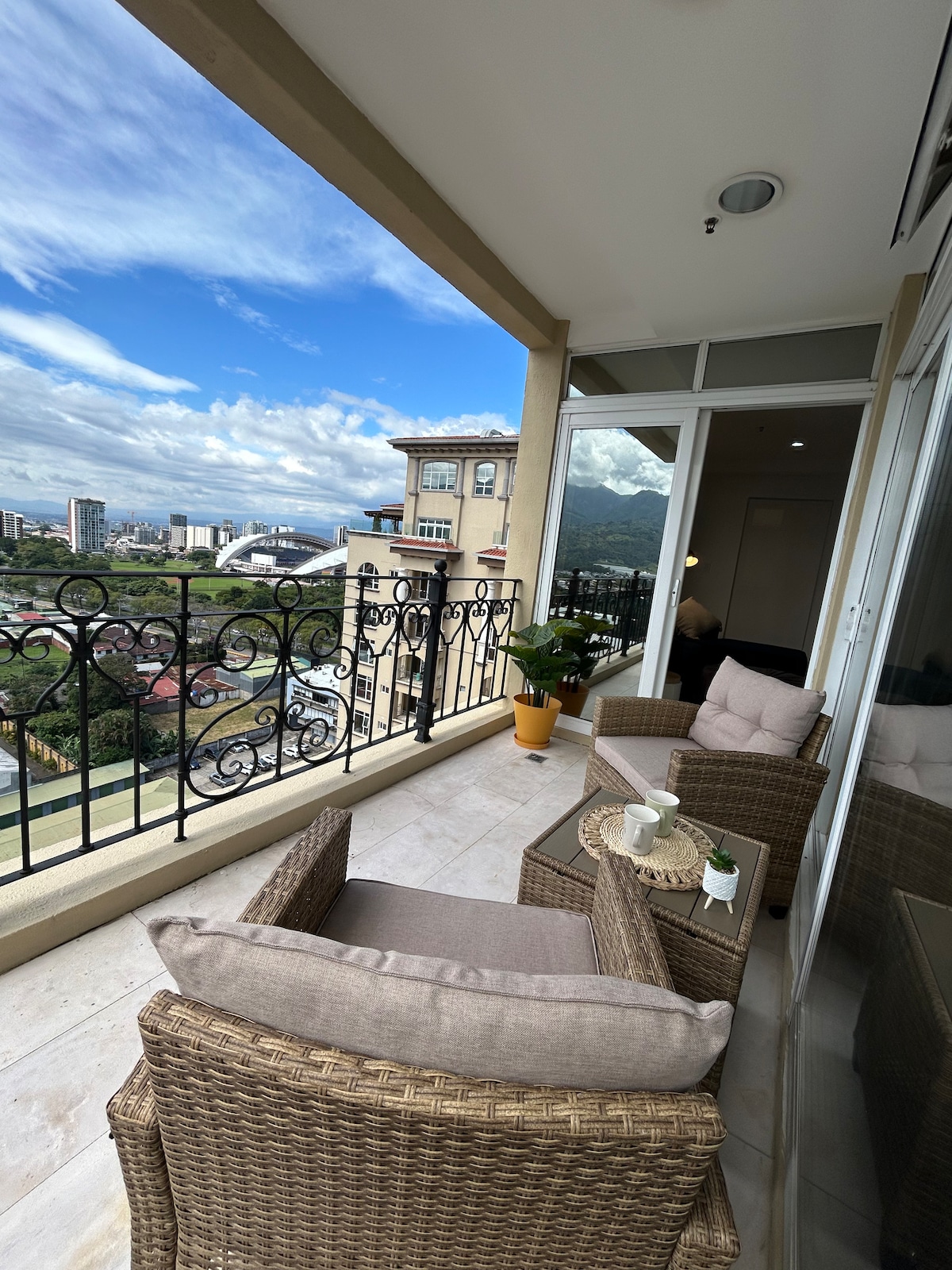Cozy apartment on the 18th floor of the modern "Cosmopolitan Tower". Enjoy amazing views, a peaceful and safe place. For your convenience parking is within the building. Enjoy the better quality coffee. Quite close to Juan Santamaría Airport. (SJO). Awesome amenities, great location, close to lovely parks, national stadium, a variety of restaurants, grocery store, banks, among other places. Enjoy it!