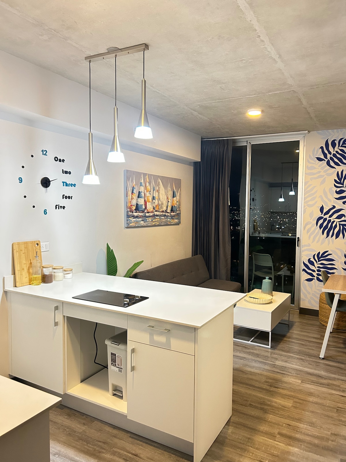 This is the life style that you deserve! Rated in Top 5% by Guests! Designed for long stays, remote working, medical tourism, one day tours base and digital Nomads. Comfy, Luxurious, Eco-Friendly, Fully equipped apartment in 14th floor in the Cosmopolitan Tower, the newest building in the best location of San José . Its located near the airports, Hospitals, Embassies, jogging parks, synagogue, restaurants and fast food, convenience stores, malls. Enjoy night city lights views everyday!