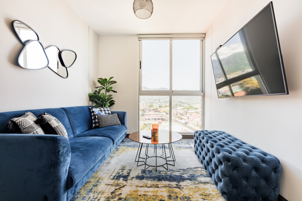 Luxury apartment with A/C, cozy, and perfectly located in the heart of the city. This fully equipped space, with modern and elegant decoration, offers you the freedom to live safely and comfortably while exploring everything the city has to offer. Close to tourist attractions, banks, supermarkets, and restaurants. (The condominium has 8 restaurants within the facilities) The International Airport (SJO) is 20 minutes away, La Sabana Park and the new National Stadium are 3 min away in San Jose.