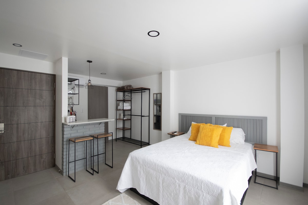 Luxury apartment with A/C, cozy, and perfectly located in the heart of the city. This fully equipped space, with modern and elegant decoration, offers you the freedom to live safely and comfortably while exploring everything the city has to offer. Close to tourist attractions, banks, supermarkets, and restaurants. (The condominium has 8 restaurants within the facilities) The International Airport (SJO) is 20 minutes away, La Sabana Park and the new National Stadium are 3 min away in San Jose.