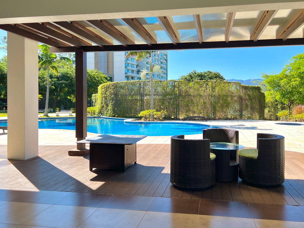 Stylish apartment in the nicest neighborhood of San Jose. The loft is in a new luxury tower with more than 10 amenities (co-work spaces, semi-olympic pool, therapeutic pool, Jacuzzi on different floors, children's garden, two gyms, and several other spaces). Supermarkets, banks, restaurants, Sabana Metropolitan Park, National Stadium, are all located nearby. Great for medical tourism, business travelers, or anyone who wants to visit San Jose.