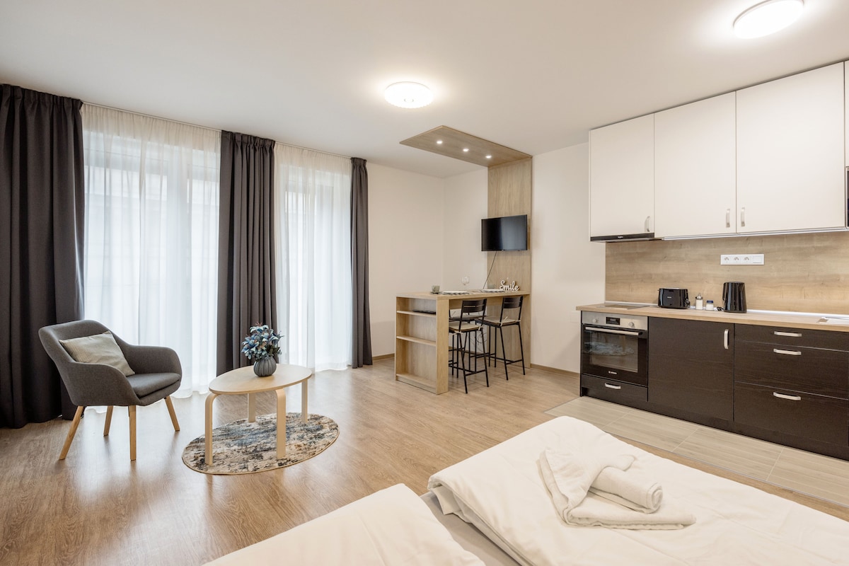 Welcome to our BRAND NEW and newly renovated studio, where modern elegance meets ultimate comfort. Ideal for couple, family and friends, or anyone seeking a stylish retreat, our studio offers a perfect blend of luxury and functionality, providing a serene haven amidst the bustling cityscape. The apartment is located right in the center of Budapest, just a few minutes walk to Kalvin bus station to the airport, Central Market and Liberty Bridge. The apartment has AC and TV with Netflix :)
