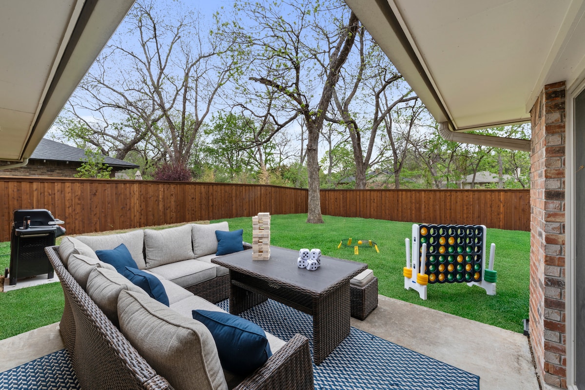Immaculately clean and exactly as pictured, this luxury Plano vacation rental is designed for comfort, privacy, and time together. Guests love the private resort-style backyard with a pool, built-in hot tub, and covered patio that is perfect for morning coffee and relaxing evenings. Inside, the home is beautifully furnished, fully stocked for real living, and supported by responsive hosting and clear, organized house instructions.