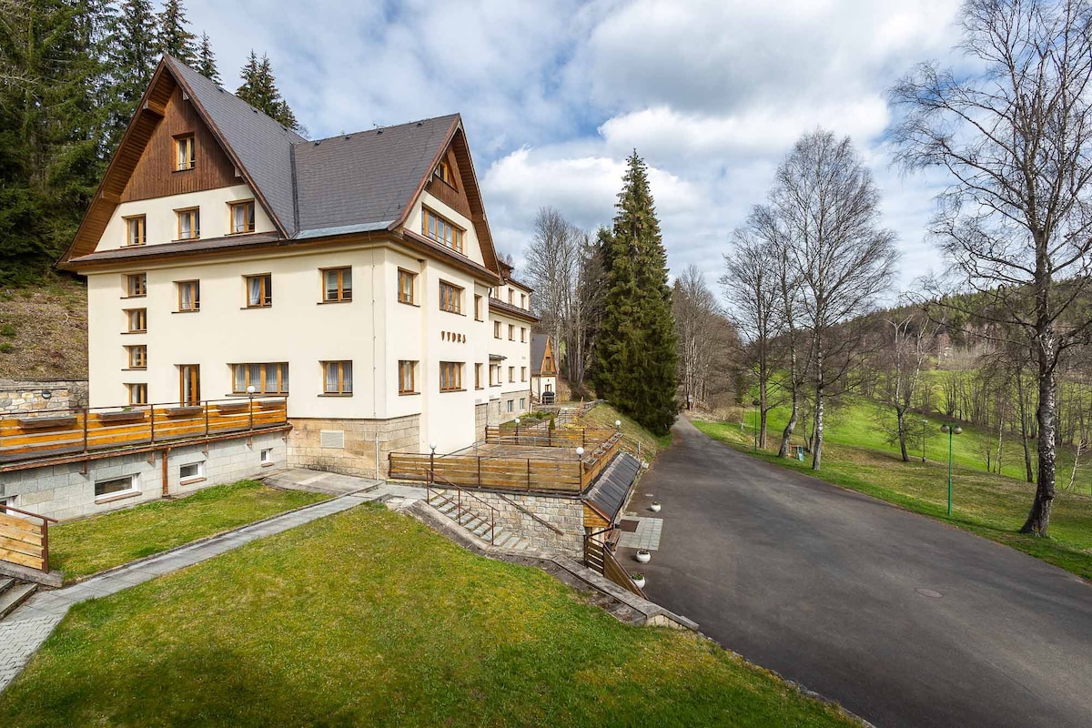 Samooblužný hotel Vydra se nachází v krásném prostředí Šumavského národního parku, v blízkosti obce Srní a města Kašperské Hory. Nabízíme pohodlné ubytování v moderně vybavených pokojích a apartmánech s výhledem na okolní přírodu. Pro vaše pohodlí jsou všechny pokoje vybaveny Wi-Fi připojením.