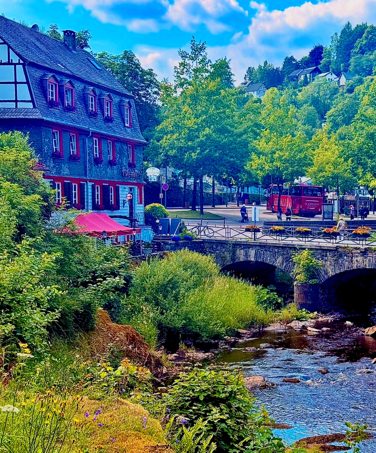 Das rote Haus liegt im idyllischen Veytal zwischen Mechernich und Satzvey, unmittelbar an dem namensgebenden Veybach. So lässt sich die besondere Lage mitten in der Natur des alten Waldarbeiterhauses genießen, während man nur 900m von der Ortslage Mechernich entfernt ist. Das Haus liegt unmittelbar an einem Fahrradweg und bietet so einen guten Ausgangspunkt für Fahrradtouren in die Region.