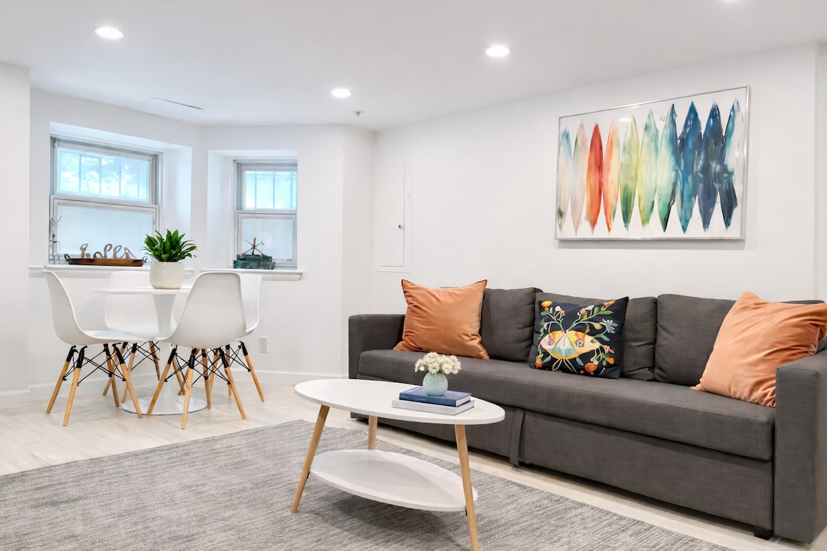 Kick back and relax in this calm, stylish space. Newly renovated basement apartment - owned and operated by 5-star Superhosts Chad and Elodie - located just a half a block from Capitol Hill's Lincoln Park. The apartment has unique art and lots of great natural light. Just a 20 minute walk to the U.S. Capitol, an 8 min taxi ride to/from Union Station, and blocks away from iconic Eastern Market. Amenities: wifi, smart tv, washer & dryer, coffee maker, etc.