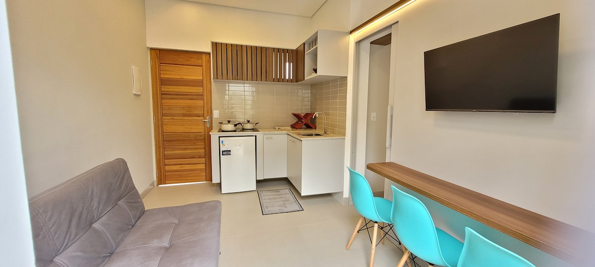 APTO 01 – Apartamento moderno, pé na areia e com vista para a natureza Desfrute de uma estadia tranquila e confortável neste apartamento novo, decorado com bom gosto e ideal para quem busca praticidade, descanso e a experiência única de ficar praticamente pé na areia. O APTO 01 oferece ambientes amplos, bem iluminados e totalmente pensados para proporcionar uma excelente experiência aos hóspedes. 🚫 Não aceitamos pets, nem mesmo de pequeno porte.