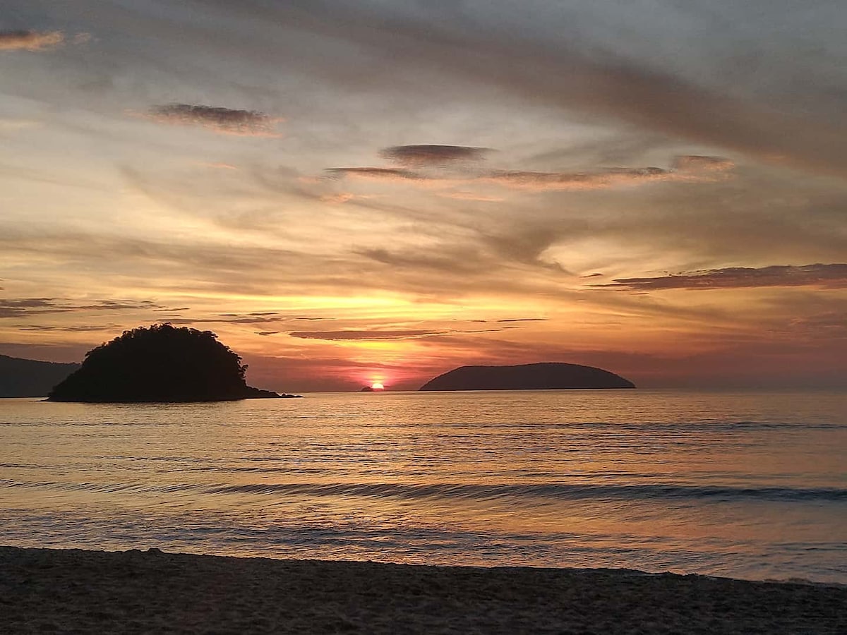 Apartamento aconchegante de frente para o mar. (50 metros) Linda vista do nascer do sol, da sacada e janelas. Praia familiar, ótima para crianças, tendo a opção de surf (lado esquerdo) e caminhada até o fim da praia (lado direito) para pescar, ver tartarugas e animais marinhos. Várias opções de lazer, entre elas: Banana-boat, passeios de escuna até as ilhas próximas. Redondeza com boa estrutura de mercados, farmácias, quiosques e restaurantes próximos, etc. Não precisa usar carro.