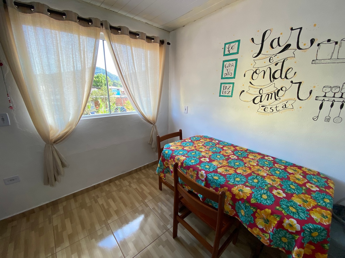 Chalé dentro do Condomínio Recanto Verde Mar em Caraguatatuba, a + - 1 km da praia da Cocanha e próxima à divisa de Ubatuba, com vista para a Mata Atlântica. Local tranquilo com segurança motorizada 24hs. Composto por 1 quarto, banheiro com box, sala/cozinha americana com panelas e utensílios em geral, tv à cabo sky, ventilador de teto, wi-fi, garagem, churrasqueira. O check-in inicia-se às 18hs e o check-out é até às 16hs.