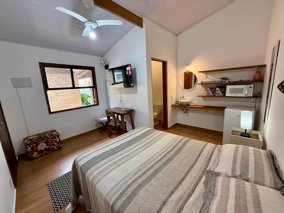 Suíte reformada em condomínio com segurança 24h (SALGA) e a 50 m do mar calmo da Lagoinha, ideal para casais e viajantes solo que buscam natureza, descanso e aventura. A região tem trilhas para o Bonete, Cedro, Fortaleza (Trilha 7 praias) e cachoeiras, além de passeios de barco para a Ilha Anchieta, praias da Caçandoca, Pulso e etc. Um canto charmoso, silencioso e cercado de verde para quem quer se desconectar e aproveitar o melhor do litoral de Ubatuba.