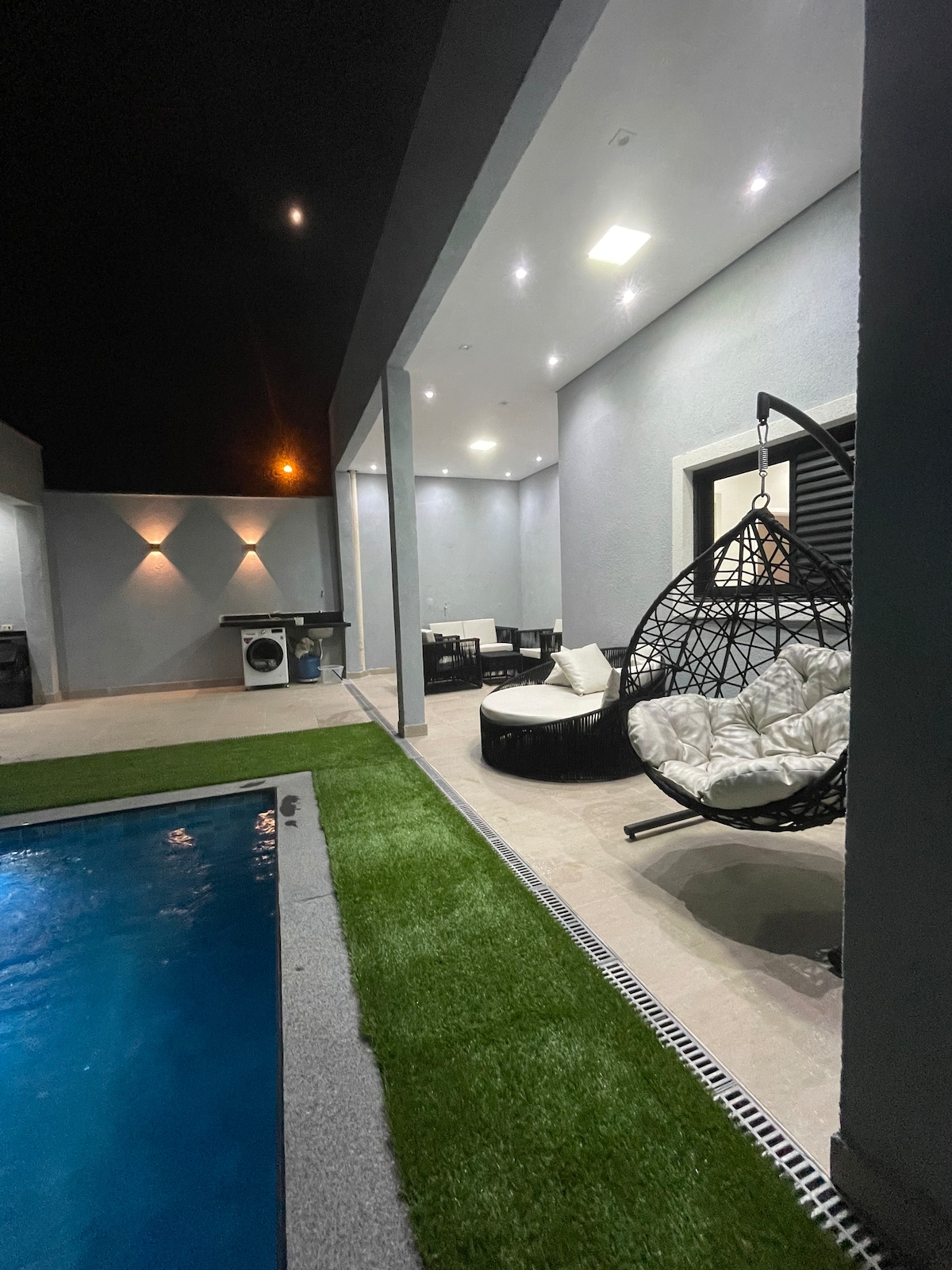 Sinta o Mar de perto, casa ensolarada décor natural e o clima leve que faz o tempo parar no seu novo refugio com piscina, churrasqueira, cozinha com utensílios completo. A casa tem 3 quartos: 1º: cama de casal, dois beliches, ar condicionado e ventilador de teto. 2º: cama de casal e ventilador de teto. 3º: cama de casal, ar condicionado e ventilador de teto. Muita área verde 2 TV de 32 e 50 polegadas Smart OBS: APROVEITE SUA ESTÁDIA EM ATÉ 6 VEZES SEM JUROS NO SEU CARTÃO DE CRÉDITO.