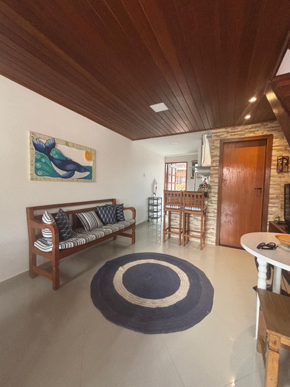 Ambiente com decoração rústica, com móveis em madeira maciça, perto da praia e da cachoeira, ambiente para quem gosta de tranquilidade com muita natureza ao redor, bairro tranquilo com mercado, padaria e açougue bem pertinho.