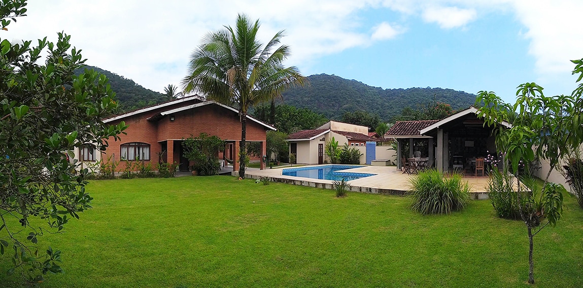 Vista fabulosa para montanhas e mar, ela está à 10 min da praia.Acomoda 10 pessoas,com todas as áreas exclusivas para os hóspedes.Oferece roupas de cama/banho para 10 pessoas,cadeiras de praia,cooler e guarda-sol.Ambiente tranquilo com segurança 24h. Ideal para estadias curtas ou longas, ótima internet com espaço para home office combinando produtividade e bem estar.Desfrute da experiência de estar em meio à natureza.A casa é pet friendly.Opção de cozinheira/auxiliar de limpeza, R$250,00/diária.