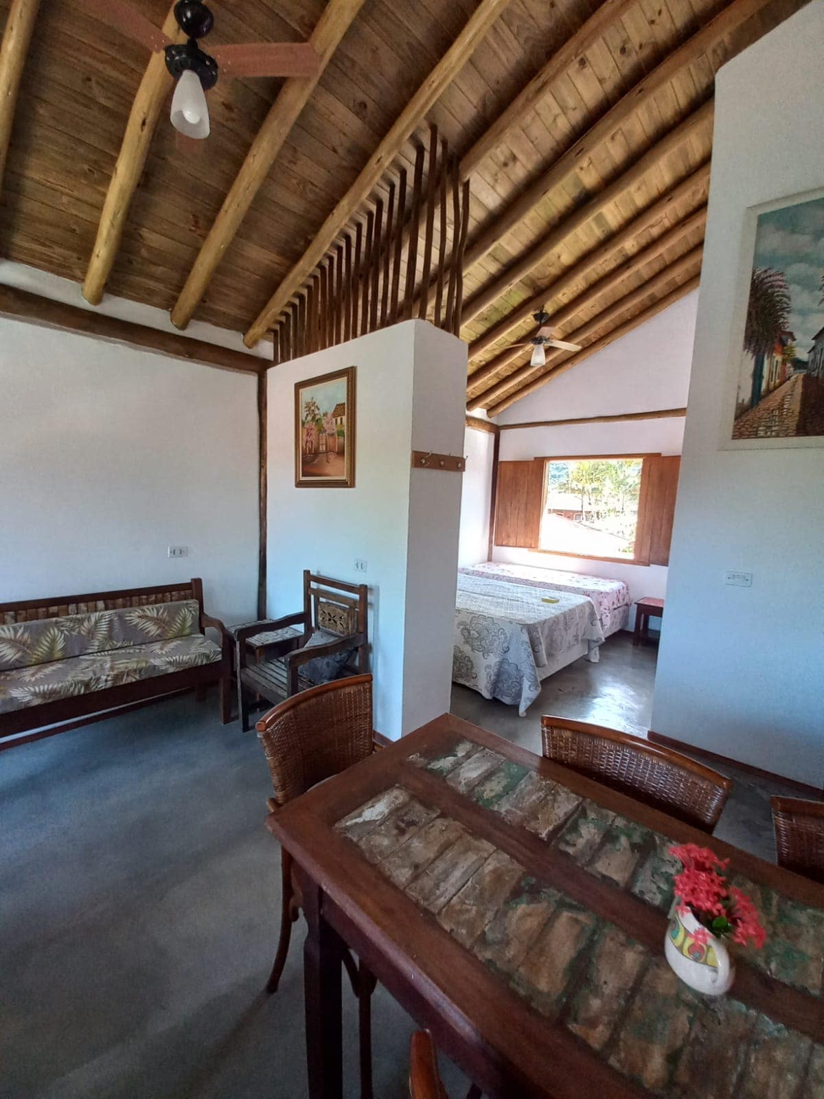Para casais românticos, nosso chalé é um refúgio encantador com vista para uma cachoeira majestosa. O chalé possui um ambiente integrado, com quarto, sala e cozinha em um único espaço aberto, ideal para momentos de proximidade. No verão, relaxe na piscina cristalina e desfrute da vista. No inverno, aproveite a fogueira externa e o ambiente acolhedor, perfeito mesmo em dias frios e chuvosos. Com Wi-Fi e smart TV, é o lugar ideal para uma estadia romântica e inesquecível.