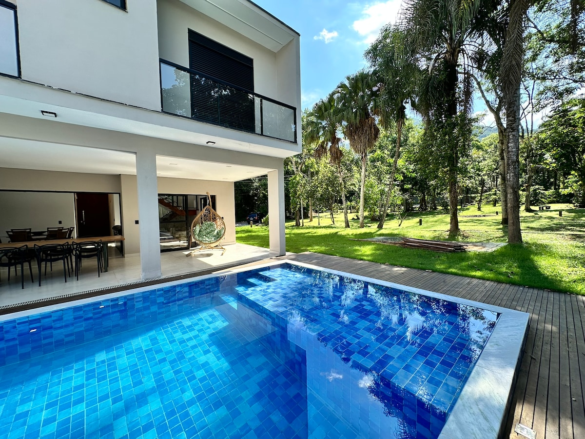Ótima casa em condomínio fechado, confortável, muito bem equipada, piscina, quatro suítes / sala TV / living todos com ar condicionado, área gourmet, amplo jardim. Localizada a menos de 100 metros da maravilhosa praia do Pulso em Ubatuba, sem escadas ou inclinação até a praia. Excellent house in a gated condominium, comfortable, very well equipped, four comfortables suites / tv room/living with air conditioning, gourmet area and less than 100 meters from the marvellous Pulso beach in Ubatuba