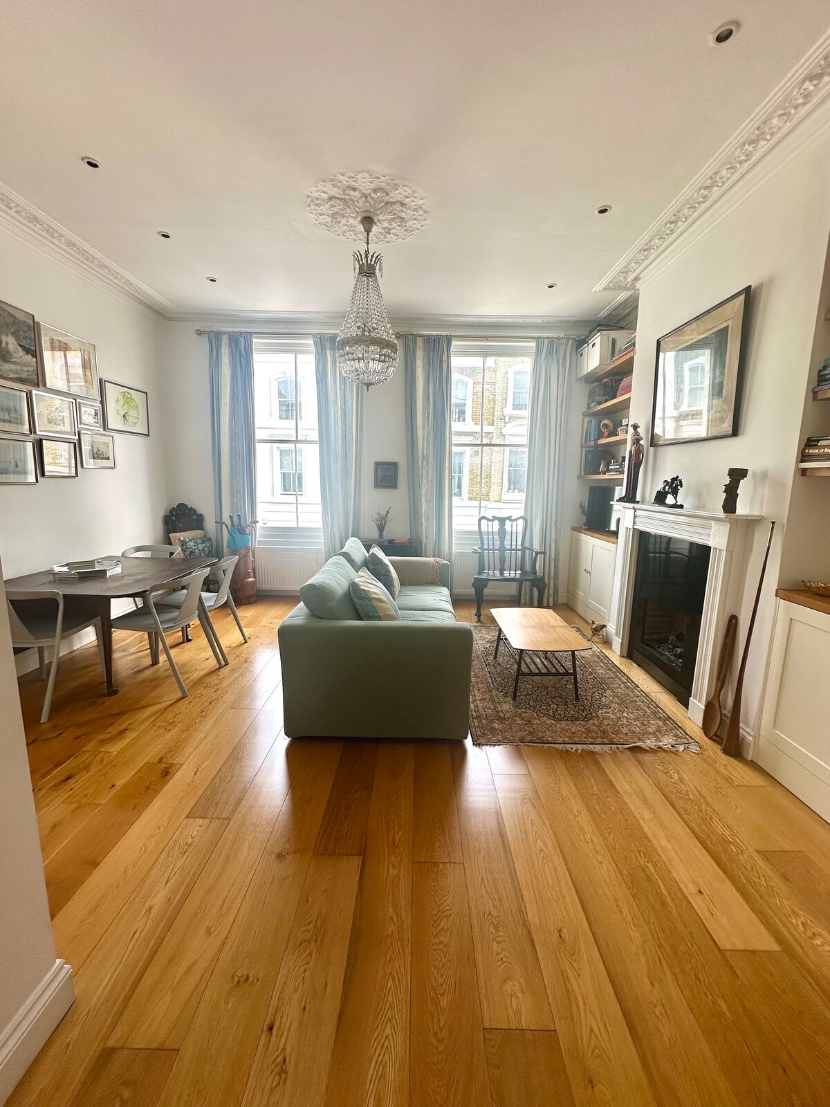 Accessed through a charming Victorian family home. This bright and intimate apartment offers a stylish retreat with a chic, monochromatic interior. Thoughtfully designed with impeccable attention to detail, the space features beautiful tiled finishes bathroom, graceful arched doorways, and characterful stripped wooden floors. Step outside to enjoy the sunny shared terrace — a perfect spot to relax and unwind in style.