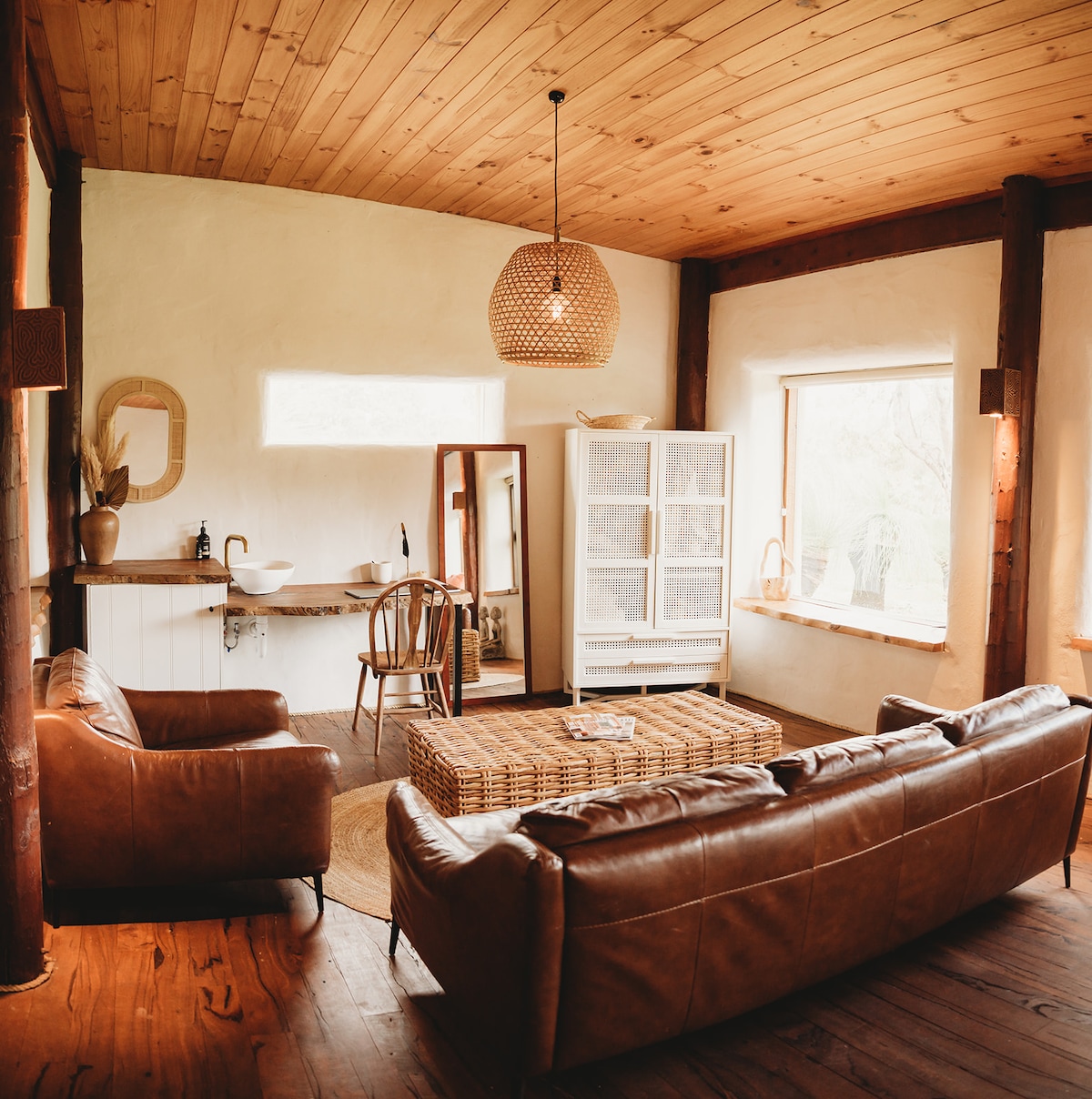 Take in views extending over treetops to Geographe Bay from the pool. This property oozes character & charm in a tranquil neighbourhood. Relax on a pool lounge and watch the world go by or head to the “Games Cave” for a game of pool or vintage arcade game. Sit in the amphitheatre by the fire pit for roasted marshmallows. Endless amusement for kids with a tree swing, trampoline, funky monkey climbing frame and an abundance of space and fresh, country air. Woodbridge Vista is a true south escape!