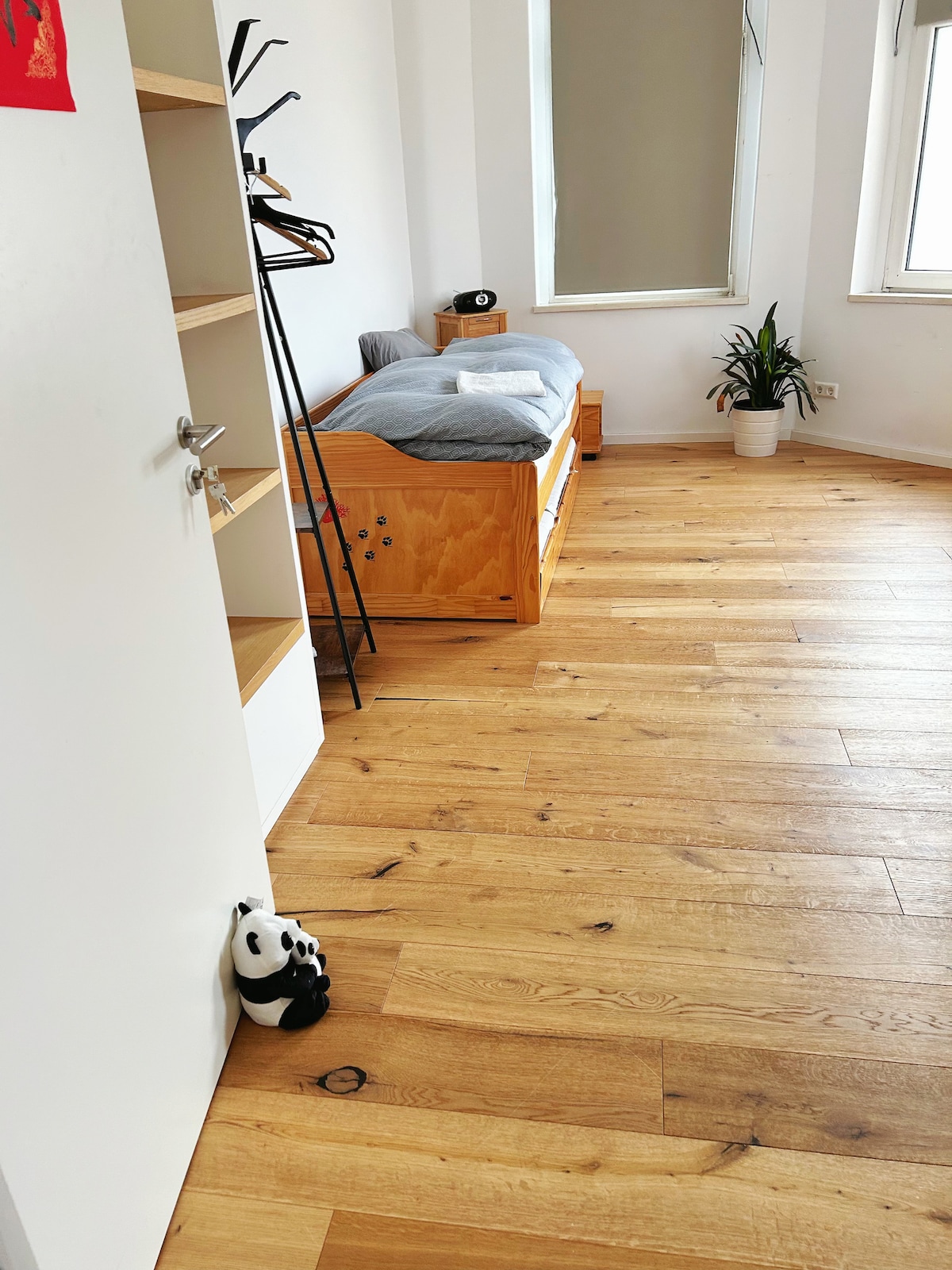 Sichtmauerwerk, Parkett, Balkon & Regenschauer-Dusche sind nur einige Highlights. Das Schlafen ist mit einem bequemen Bett 180x200, Kleiderschrank & elektrisch höhenverstellbarem Schreibtisch ausgestattet. Das 2. Schlafen ist im Wohnen mit einem komfortablen Bonellfederkern Schlafsofa 160x200. Die amerikanische Küche ist mit Geschirrspüler. Parken: kostenfrei auf der Straße. Sehr guter Anschluss: öffentliche Verkehrsnetz & Erreichbarkeit von Bahnhof, Flughafen, Autobahn, BMW, Porsche, DHL, WLAN