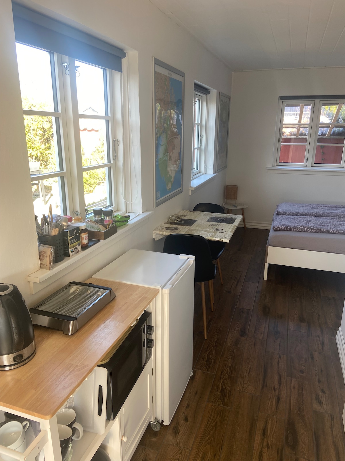 Separat bygning med egen indgang. Der er egen have med til annekset. Annekset ligger i roligt villakvarter, tæt på metroens endestation. Der er 200 meter til Naturpark Amager, et 3500 hektar stort område med flot natur og mange cykel og vandre stier.