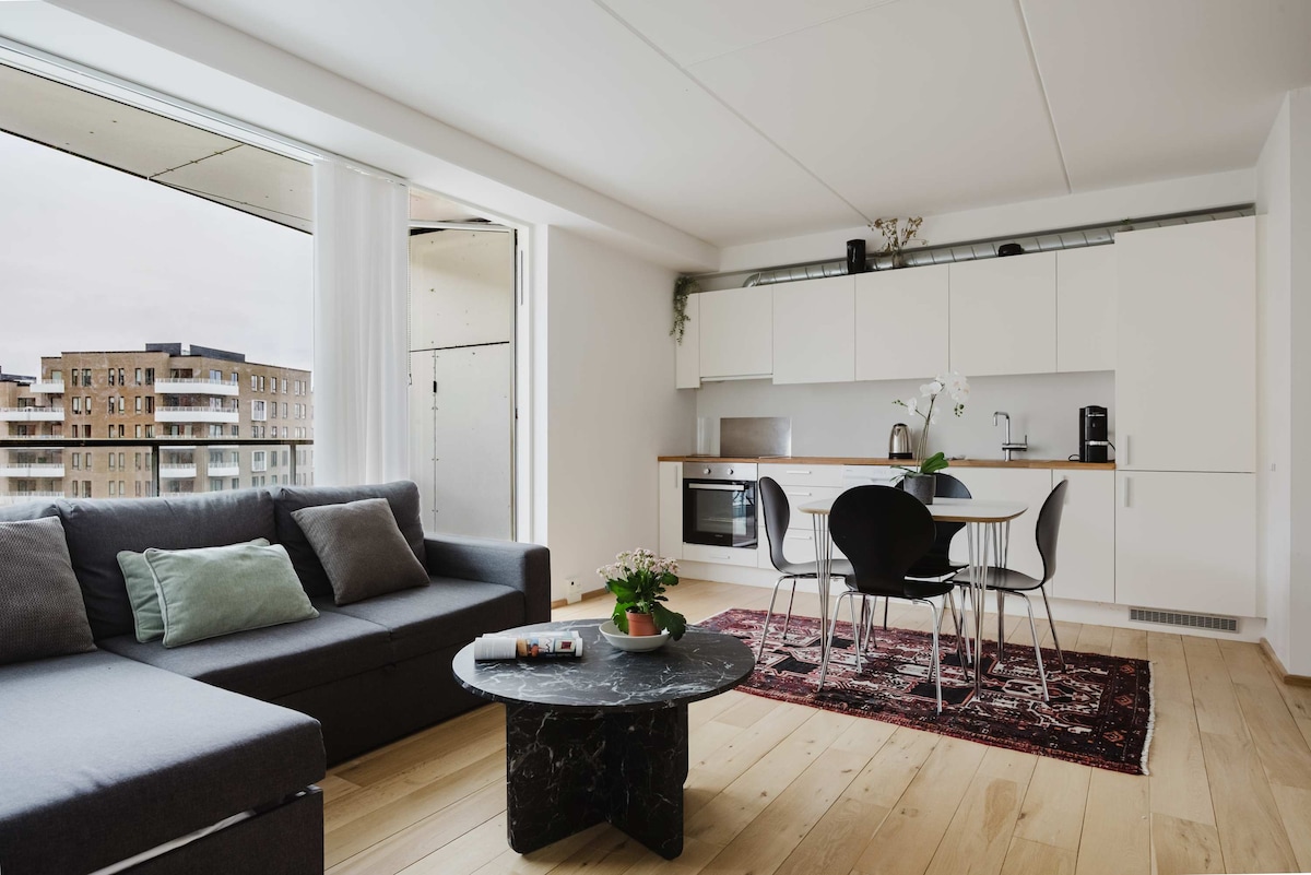 A stone's throw from Bella Center conference venue, and metrostation, taking you into town in just 12 min. Designed by renowned Danish architect, Bjarke Ingels, you can look forward to a spacious (116 sqm) open apartment, with an abundance of natural light, an impressive view, and where comfort, quality and coziness go hand in hand. An 8 min. taxi from the airport, or 15 min. by train, you'll soon find - and feel - yourselves at home. Scandi minimalism, Danish design with plenty of "hygge".