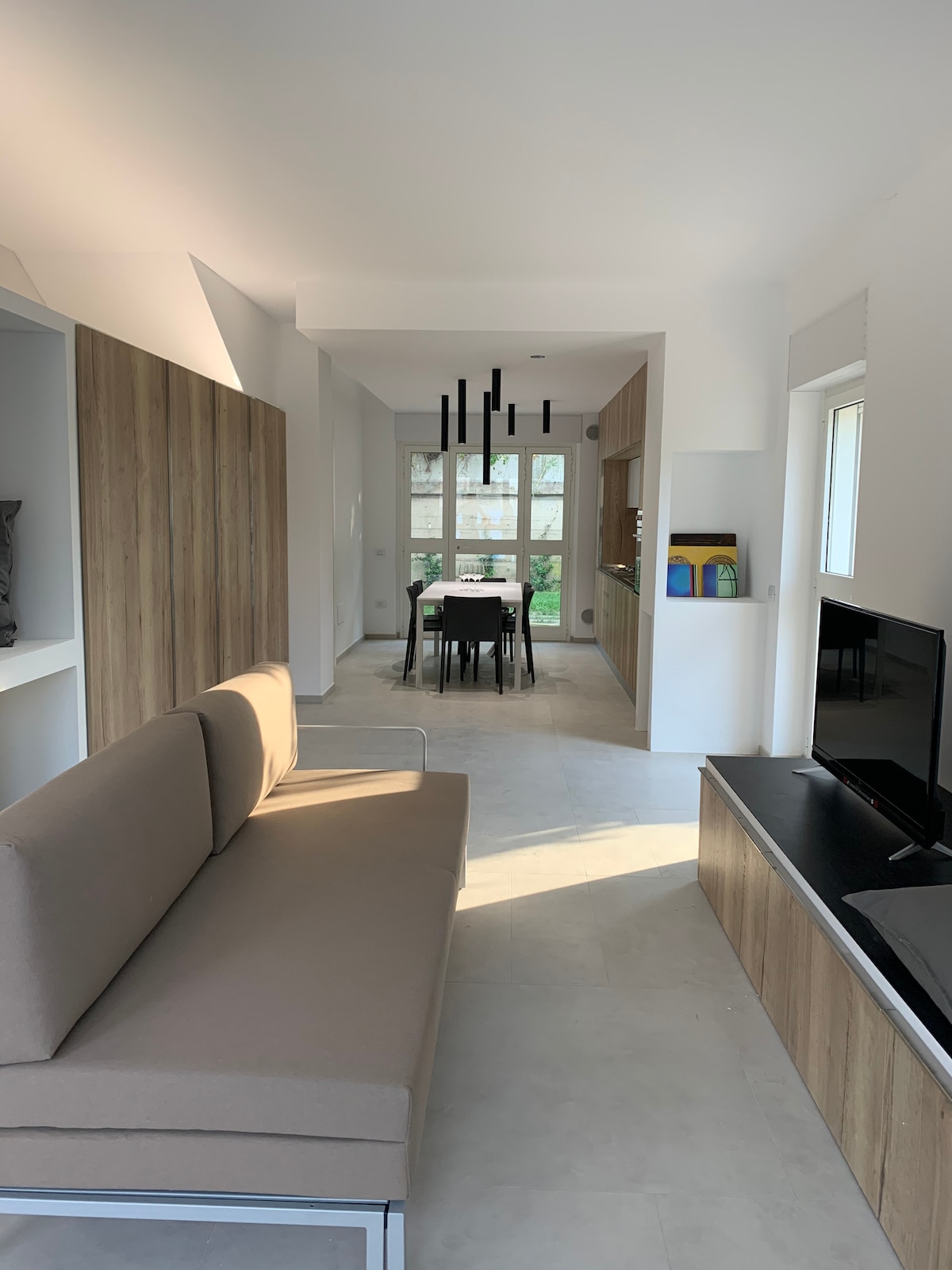 Appartamento nuovissimo ed ultramoderno, dotato di: sala con ampio angolo cucina; terrazzo con vista giardino; divano letto due posti; camera con letto matrimoniale; bagno con doccia e bidet. Tratti distintivi: gas free; riscaldamento a pavimento; aria condizionata; wifi ultra veloce; posto auto riservato; piccoli elettrodomestici e stoviglie. Punti di interesse nelle vicinanze: Museo dell’Ottocento; Lungomare Sud; Corso Manthonè; Stazione di Portanuova; Ponte del Mare; Supermercato h24.