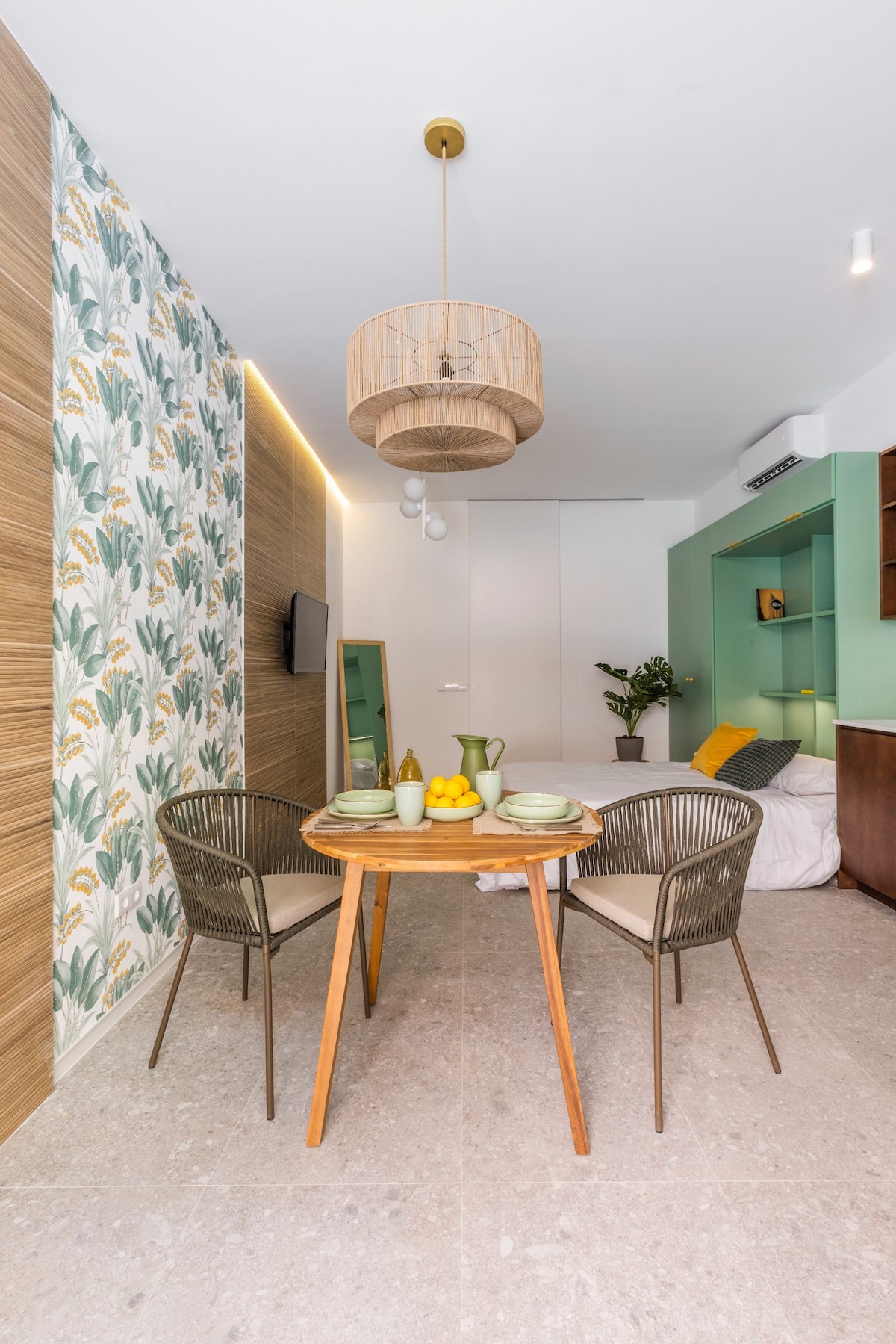Stylish Nordic design meets warm Spanish living in this home where bold colours highlight the contemporary decor. Relax in the quiet open spaces or lounge on the sunny balcony overlooking the streets. You can enjoy a refreshing moment in the spacious bathroom or prepare yourself a gorgeous meal with the fully equipped and furnished kitchen. And when you are tired of your exploring day in the city, nothing better than the calm of the bedroom and the comfortable bed.