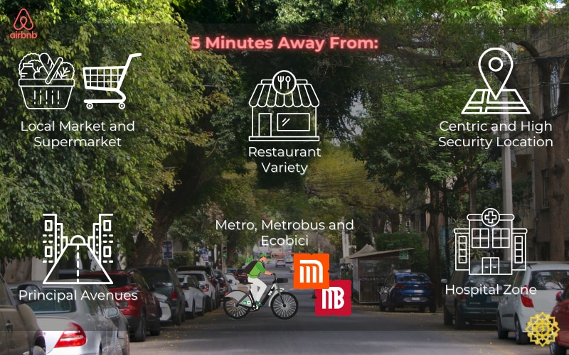 A unos pasos de Av. Paseo de la Reforma y detrás de la embajada de Estados Unidos, se encuentra un edificio con 12 suites recientemente remodeladas. La suite cuenta con cama Queen Size, una pequeña cocina equipada con todo lo que necesitas, internet de alta velocidad para poder trabajar vía remota y servicios de streaming. Cerca de una zona de muchos restaurantes, a unos pasos del Ángel de la Independencia y cerca del bosque de Chapultepec.