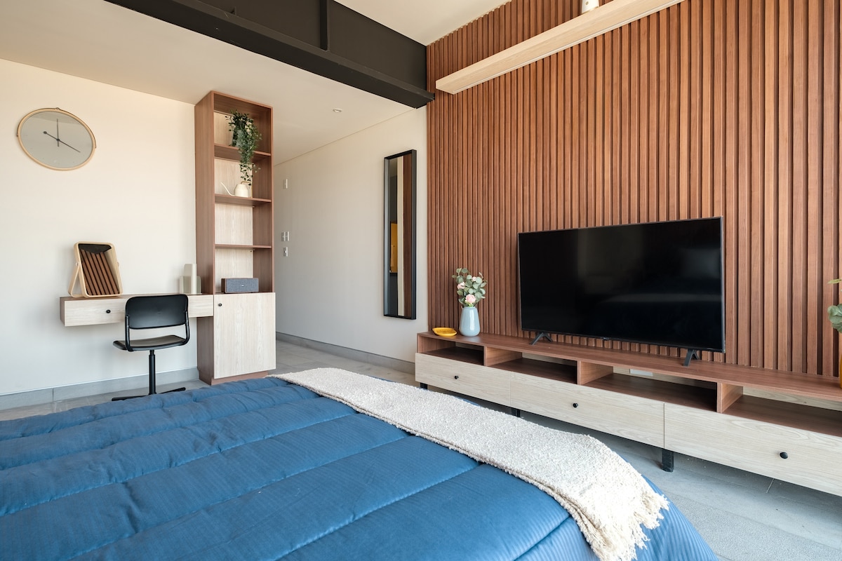 Loft de lujo entre Polanco y Palmas, ideal para una experiencia 5 estrellas. Cuenta con cama King Size, TV 75” con streaming, Wi-Fi de alta velocidad (100 Mbps) y una cocineta. Perfecto para viajeros que buscan confort y estilo. A pasos de tiendas de conveniencia 24h y una amplia variedad de restaurantes. Disfruta de la privacidad y comodidad de una suite premium, con todo lo que necesitas para una estancia inolvidable. ¡Te esperamos! Es perfecto tanto para viajes de negocios como de placer.