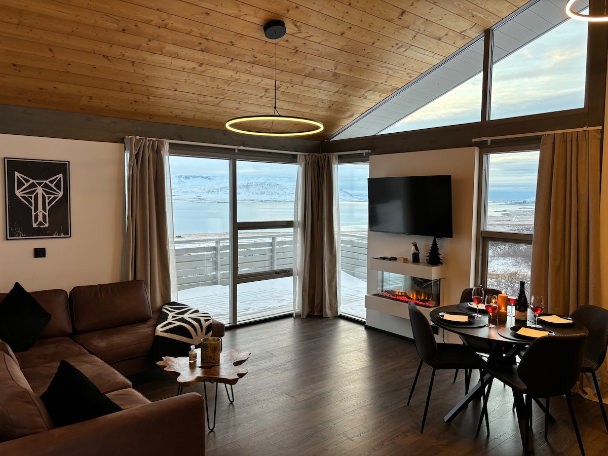A quiet and peaceful getaway with amazing ocean views. Located in the beautiful fjord called “Hvalfjörður”. Only a 45 minute drive from the capital. The interior was completely renovated in 2024. You can relax in the hot tub and enjoy amazing views of the horizon during the summer and you might see the northern lights during the winter. It's a perfect location for day trips to discover the Snæfellsnes peninsula and the silver circle and it's not far from the golden circle either.