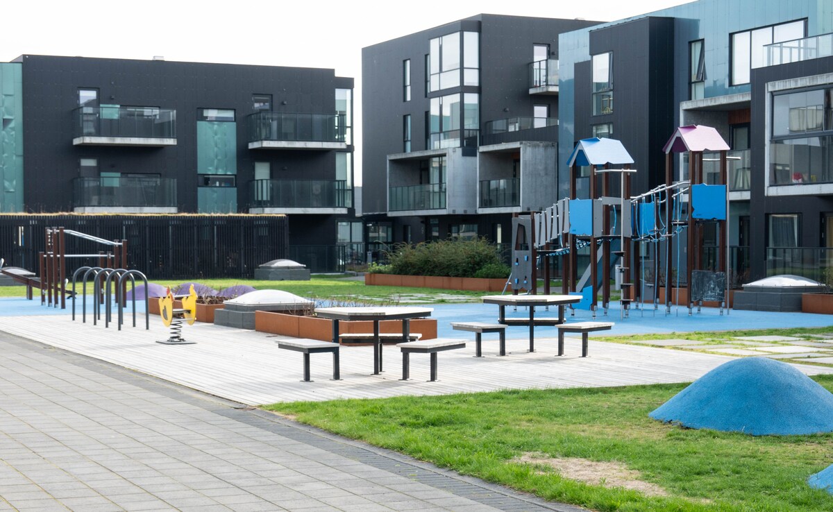 Newly designed and fashionable apartment situated alongside the lavish Sky Lagoon and the ocean. 1 bedroom, living room, kitchen, bathroom and a private balcony. Free parking. The apartment is located within walking distance to sky lagoon, cozy bakery, local swimming pool and a fine dining restaurant. Guests can also enjoy nice walking paths by the ocean and harbour. Downtown Reykjavik is only 8-10 minutes away by car.
