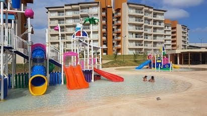 Churrasqueira de carvão no AP; acesso até 23hs as 7 piscinas, 3 hidros, pode levar bebidas e comidas nas mesas das piscinas); Sauna; Salão de Jogos; Sala de convivência; Playground; garagem; ; Ar Condicionado; ventilador, TV 43” (Sala); TV 32” (Quarto); Wifi; panela elétrica de arroz e feijão; ferro; liquidificador; filtro de água; secador; sanduicheira, Cafeteira; Fogão; Microondas; panelas; utensílios de cozinha. Ao lado de supermercado, farmácia, bares e próximo aos parques aquáticos.
