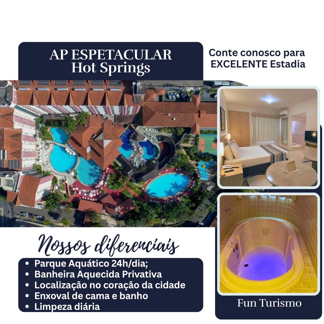 Clube c/ 10 piscinas (05 quentes),ofuros, sauna,restaurante,quiosque,campo gramado/areia,trilha,churrasqueiras,etc O ap acomoda até 08 hóspedes (qualquer idade). Check in às 14h e Check out às 12h (negociáveis). Apto 2/4 reformado: - Cozinha c geladeira NOVA,fogão,micro-ondas,jogo panelas,sanduicheira,liquidificador,etc - Sala c/ TV Smart, Wi-Fi próprio,sofá cama - Suíte c/ cama casal,ar condicionado,TV,armário; - 2° quarto c/ 2 camas solteiro, ar condicionado,02 colchões avulsos,armário;