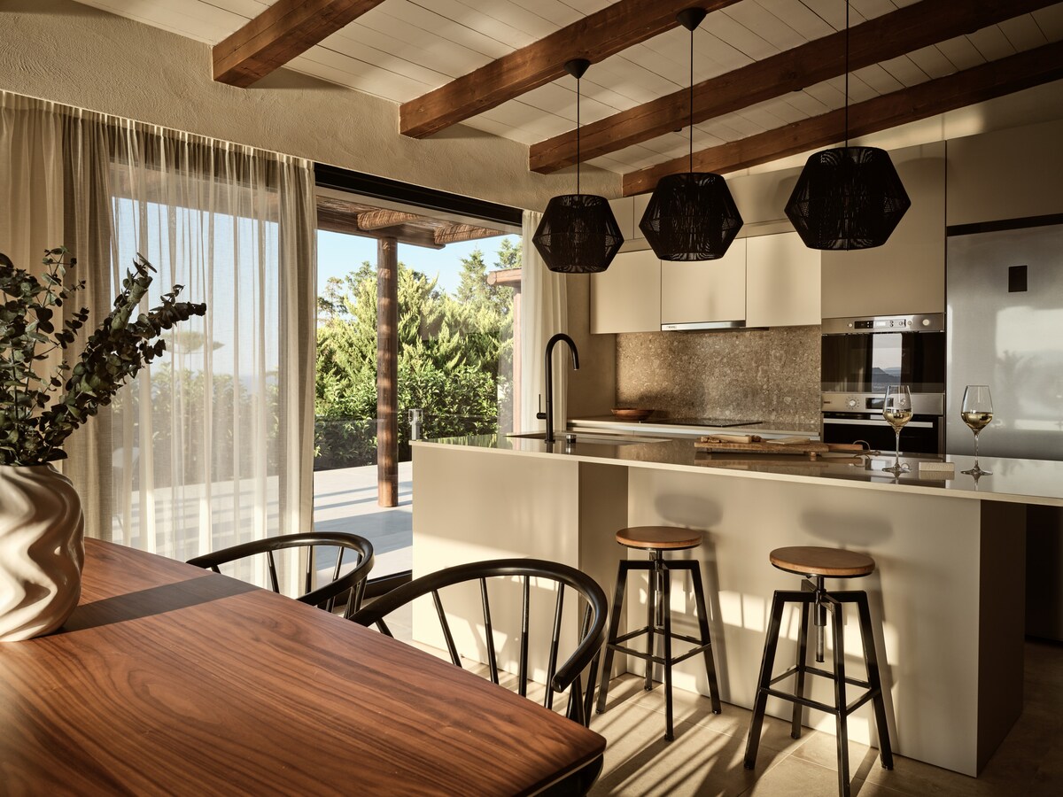 With an abundance of al fresco beachfront activities in which to immerse yourself, you're unlikely to venture too far afield when you take exclusive hire of Esthesis Villa. Complete with outdoor infinity sea water swimming pool (can be heated with an extra fee), in-pool hydromassage features and access to a beach, summer days can be spent in a hive with loved ones. The architectural villa beachfront gem can comfortably welcome up to 6 guests cherish a utopian holiday break with loved ones.