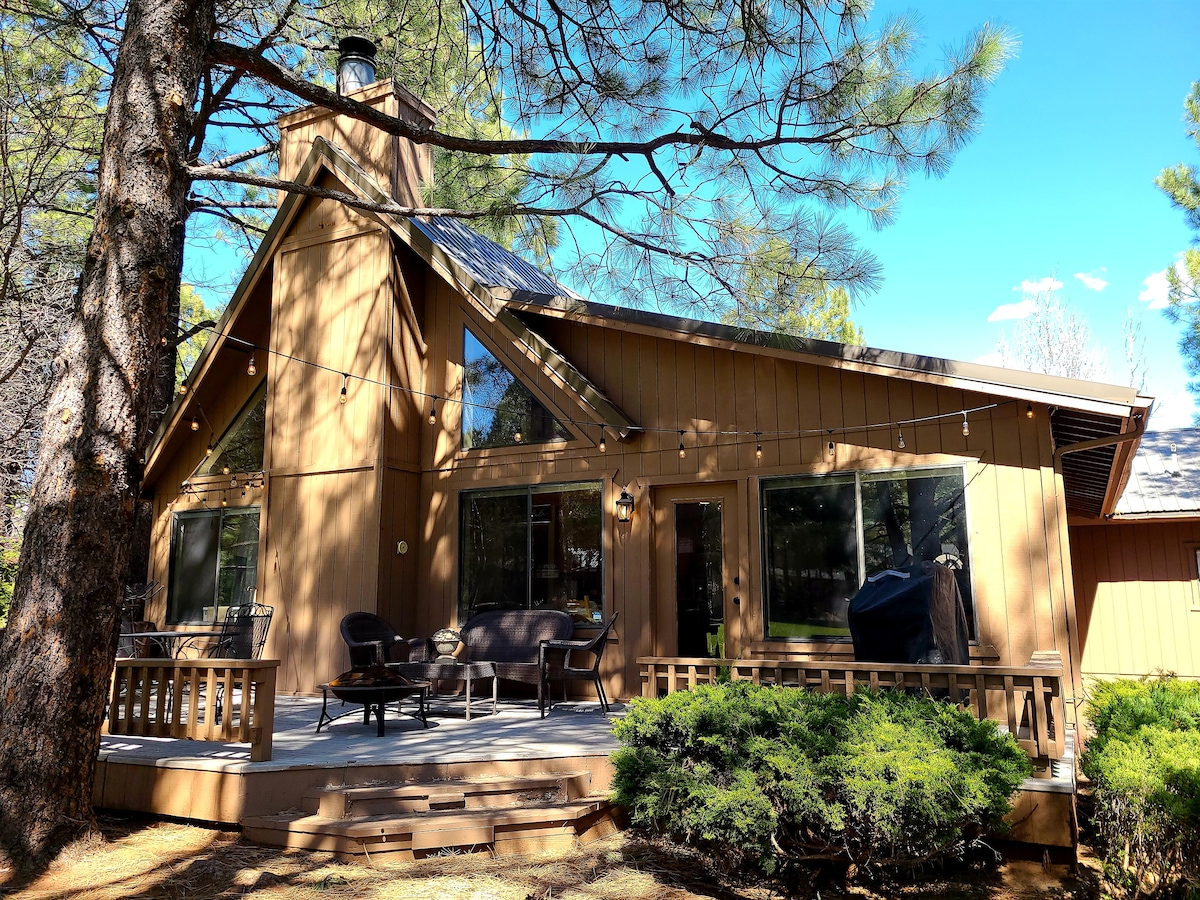 Serenity at Pinetop is a 6-bedroom, 4-bath Pinetop vacation rental and is the perfect home base for your next family reunion, hike trip or visit to Sunrise Ski Resort! Featuring 4 Smart TVs, a fully equipped kitchen, and in-unit laundry, this log cabin offers comfort and convenience.