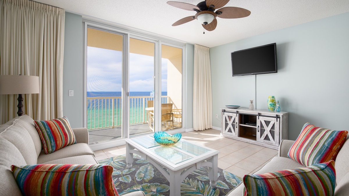 Beautiful 1 bedroom, 1.5 bath condo sleeps 6. Bring your swimsuits and get ready to relax! Condo is on 12th floor, tower closest to the pier. - 1 bedroom with king size bed, cozy bunk area for kids, and gel foam mattress on fold-out sofa. (ALL MATRESSES NEW IN SEPTEMBER 2025). - All linens and towels provided, including beach towels! - 2 beach chairs, 2 boogie boards and a beach umbrella included - Washer & dryer - Fully equipped kitchen to enjoy dinner with a view - Wi-Fi & cable