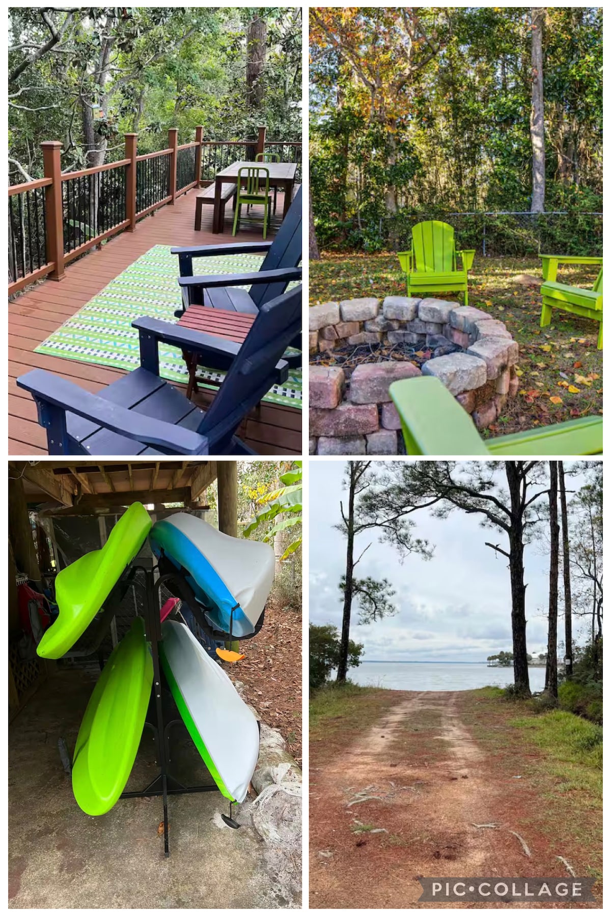 The best of both worlds. Our 11-acre waterfront family’s retreat is the ideal getaway for outdoor enthusiasts and beach lovers. With RVs on the front of the property and the occasional tent camper dispersed through out the acreage, you’ll enjoy time away from the crowds walking the mulched trail to the water or using the two kayaks provided for guest use. We offer additional experiences. Outdoor brunch for two/group, afternoon teatime, boho picnic, s’mores bundles, etc. Message with interest.