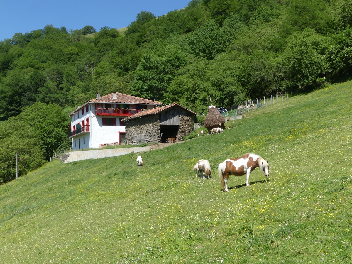 Aquí vivimos y es un espacio rodeado de montañas, naturaleza y animales para desconectar y disfrutar de un entorno único. Orientado para personas que busquen un ambiente tranquilo y familiar. A 10 km de San Sebastián , para disfrutar de su gastronomía y su belleza y también de Francia y sus lindas playas. Las zonas exteriores, jardines, piscina y barbacoa son comunes a todos los huéspedes! Las mascotas abonan 10€ por día cada una. Piscina de temporada: abre 22 mayo cierra el 6 de octubre.