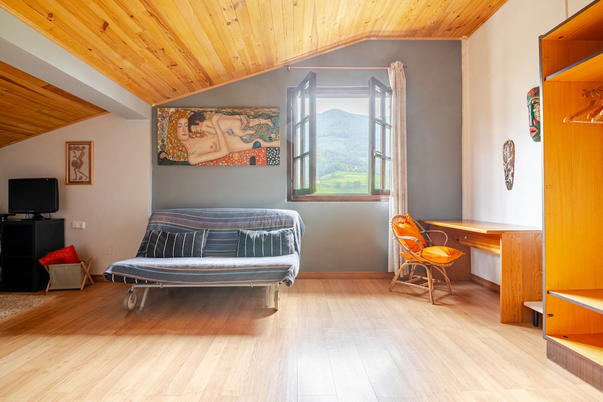Disfruta de un refugio rural acogedor en Elgoibar, con estufa de leña y wifi. Ideal para desconectar del estrés urbano,teletrabajar o disfrutar un fin de semana en familia. A solo 40 -50minutos de Bilbao,Donostia y Vitoria,combina naturaleza y comodidad cerca de las ciudades. N°de registro turístico: ESS01929