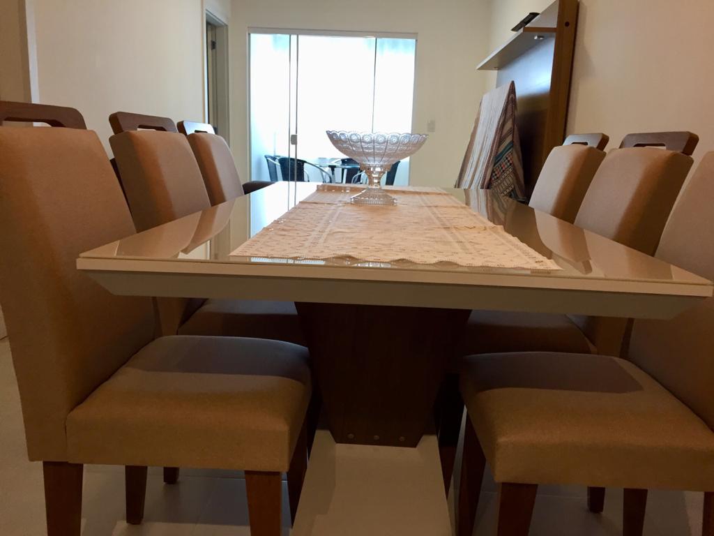 Moderno apartamento 2 quartos FRENTE MAR em condomínio fechado a 5 minutos do Aeroporto e 12 minutos do Parque Beto Carrero. Condomínio tranquilo e familiar, opção ideal para um ou dois casais. Acesso a praia bem em frente. Sacada com churrasqueira a carvão com grelha, pátio fechado nos fundos com varal para pendurar roupas, internet wifi, tv 43" a cabo com 78 canais, ar condicionado nos quartos e sala, cozinha completa. 2 vagas carro PRIVADAS e numeradas descobertas. Lotação máxima 4 pessoas