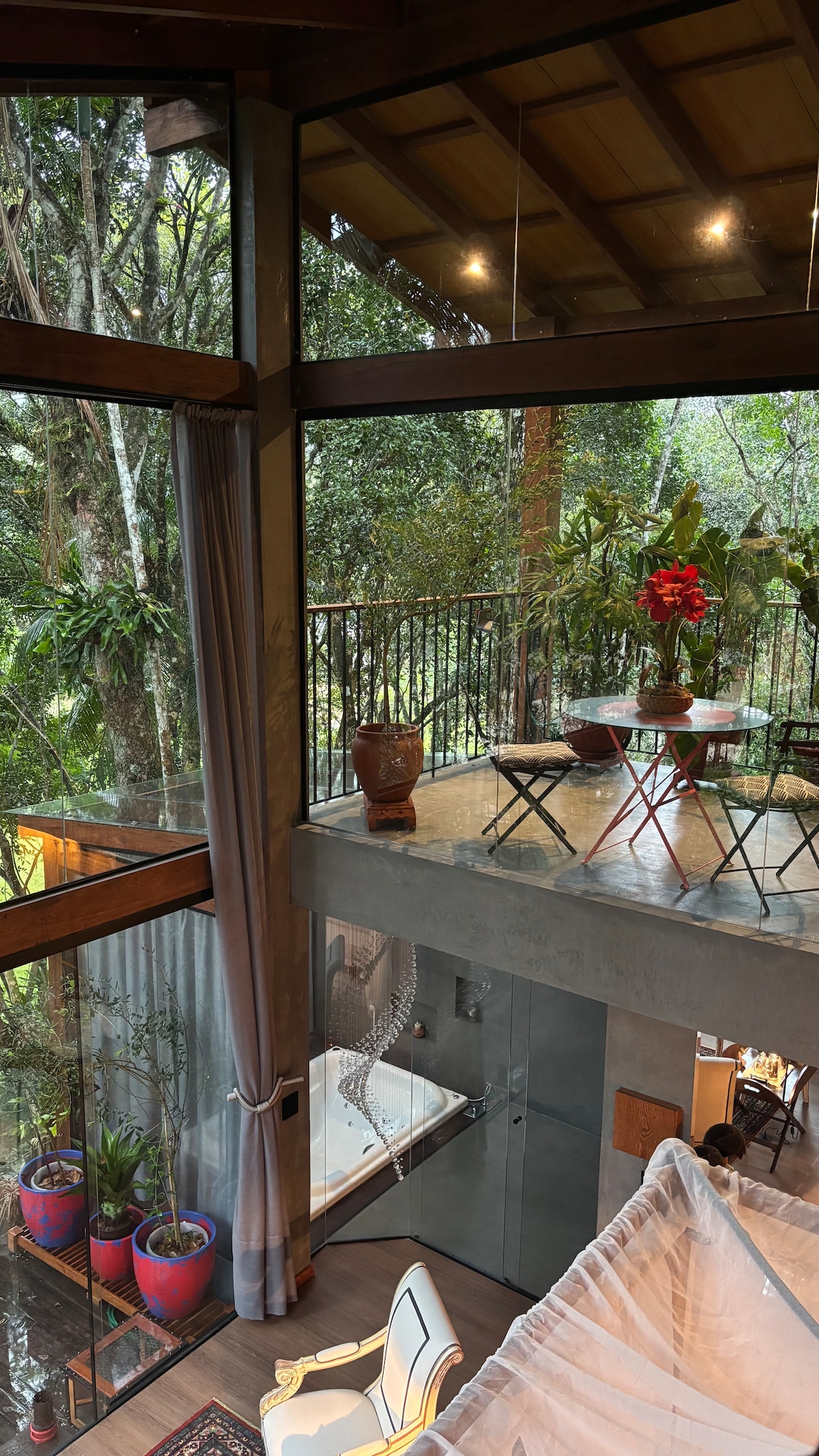 Este lugar único tem um estilo próprio rodeado por natureza abundante em um local privilegiado e exclusivo mesclando uma conexão MAR e MATO! O Loft Villa Rhemá é um dos dois Lofts do Espaço Villa Gloriosa! O loft conta com uma suíte ampla maravilhosamente decorada em estilo Rústico/moderno! Possui uma varanda com uma vista incrível das montanhas que podem ser contempladas da sua cama ao abrir as cortinas pela manhã! No quintal dispomos de uma Jacuzzi de hidromassagem aquecida!ENJOY◇♡