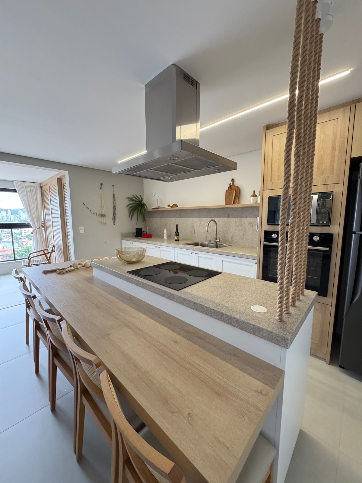 O apto tem um quarto Tipo Estúdio, com Cama Quem, na sala um sofá cama e deixo um colchão avulso, Ele é ideal para Casal com filhos, Cozinha com fogão de indução c 2 bocas, equipado com todos os utensílios Ar condicionado quente e frio no quarto, mas ele aquece ou refrigera o apto tdo, Forneço roupa de cama e Banho, cobertores, O PRÉDIO TEM UMA BOA VAGA DE GARAGEM INCLUSA DENTRO DO PRÉDIO A voltagem da energia em SC é 220vtS