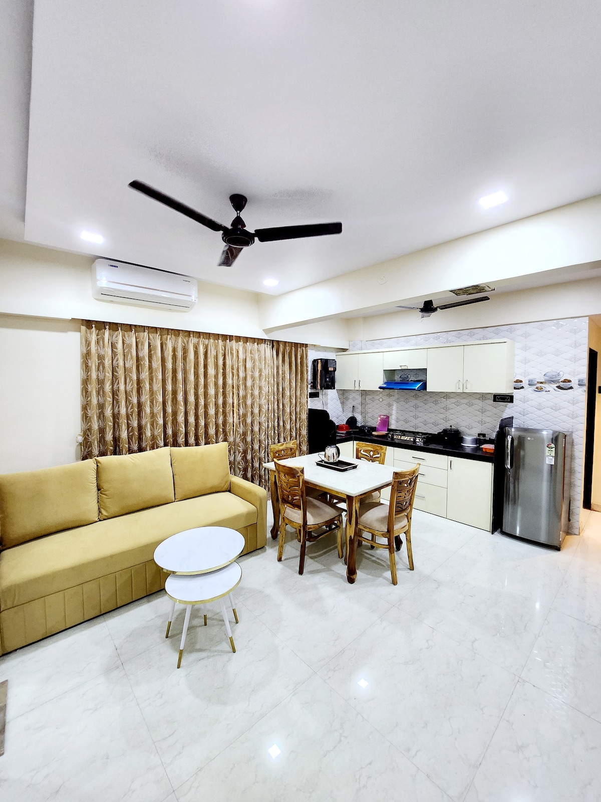 Traveling on business? and need a better option to a hotel room, or to just a studio apartment available in Thane? .... come enjoy this beautifully designed one bedroom apartment that is ideal for a corporate professional who loves access to a kitchen and a laundry facility. Or you may be a couple visiting family in Mumbai... or a small family attending a family wedding... Come enjoy this stylishly designed functional home away from home.