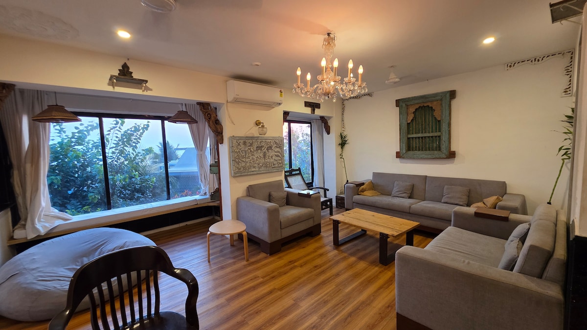 For the truly adventurous only: This stylishly renovated, beach-facing 2-bedroom home comfortably accommodates up to 4 guests. It features a fully equipped kitchen with a coffee maker and offers a cozy, modern vibe. Located right on Chimbai Beach, the home is just a short walk from Bandra’s iconic Bandstand and a variety of trendy bars and cafés. Please note: access to the house involves a short 100-meter walk through a modest neighborhood from the main road.