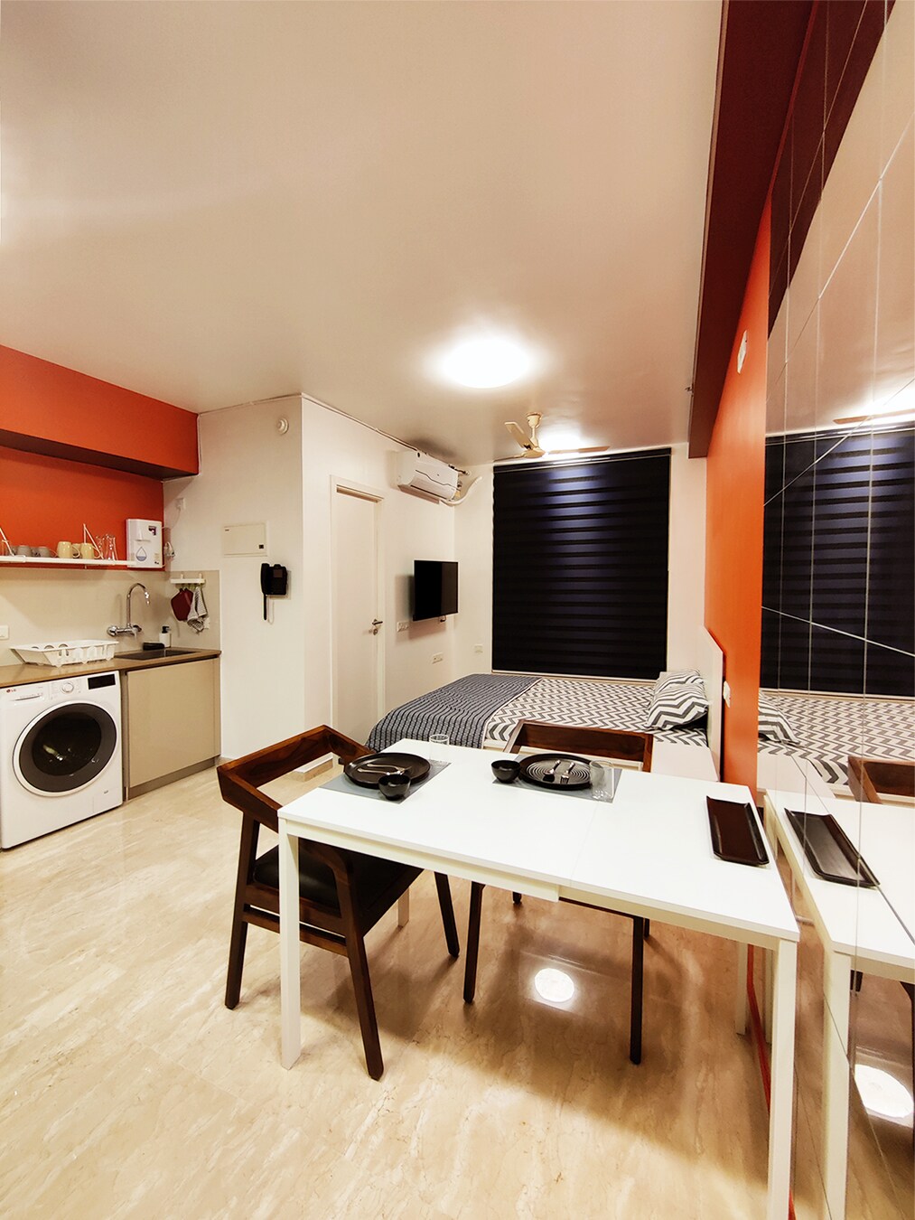 Come here to enjoy the happiest stay! The vibrant interiors are going to refresh you and the peaceful panoramic view is going to relax you. find the best of both away from hustle and bustle of the city life, right at the heart of the city. Have a precious moments with your loved ones while dining, watching your favorite shows on our smart TV or soak in the beauty from the balcony. Just a humble request not to lean from the balcony.